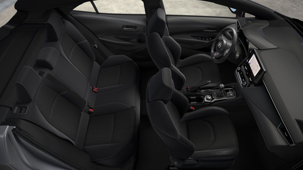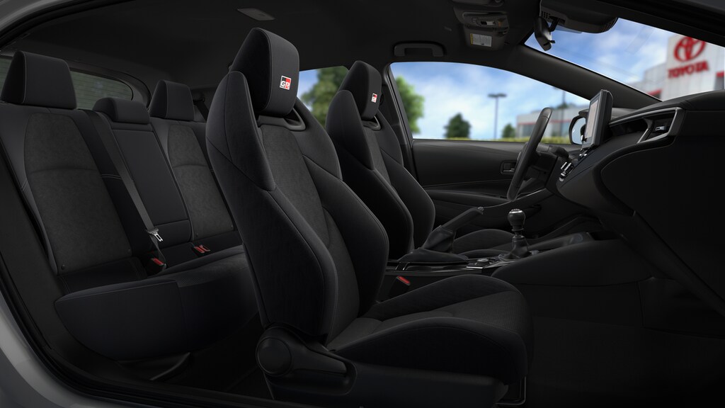 - Fabric sport seats with gray stitching and GR-badged headrests 6-way adjustable driver's seat 4-way adjustable front passenger seat
